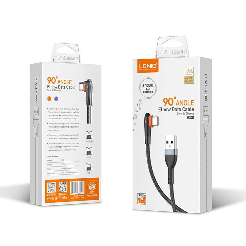 کابل شارژر 90 درجه USB-C به طول 1متر 2.4 آمپر مدل LDNIO LS561