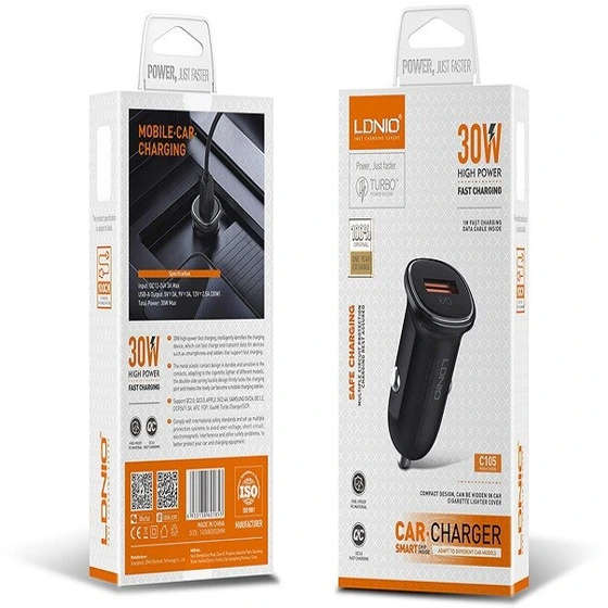 شارژر فندکی 30وات الدینیو مدل C105پک اصلی و تضمین کیفیت