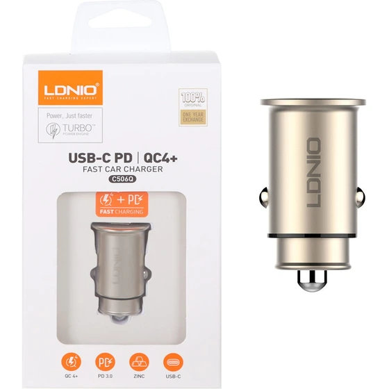 شارژر فندکی 30 وات الدینیو مدل C506Q به همراه کابل تبدیل USB-Cبا تضمین کیفیت و اصلی بودن