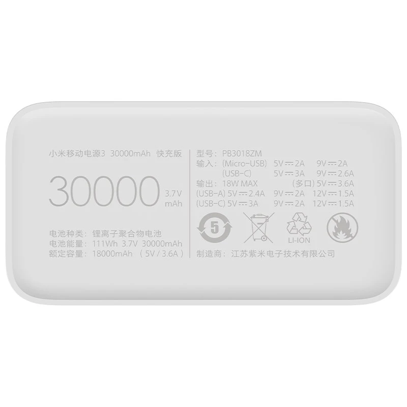 پاوربانک 18 وات شیائومی مدل Mi ظرفیت 30000 میلی آمپر ساعت فست شارژ پک اصلی