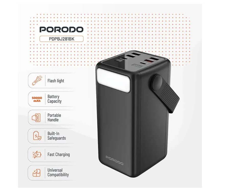 قابلیتهای ویژه پاوربانک : پشتیبانی از فناوری شارژ سریع Power Delivery (PD)، قابلیت اتصال به تلفن همراه و تلبت، چراغقوه داخلی، قابلیت شارژ همزمان چند دستگاه