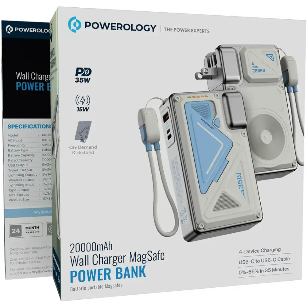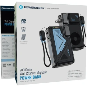 شارژر دیواری و پاوربانک وایرلس Powerology Wall Charger MagSafe PPBMH104BK یک محصول چندکاره، قدرتمند و ایمن برای کاربران حرفهای و افرادی است که نیاز به شارژ سریع و قابل حمل دارند. با ظرفیت باتری ۲۰٬۰۰۰ mAh، پشتیبانی از شارژ بیسیم MagSafe، خروجی سریع PD تا ۳۵ وات، چند خروجی و ورودی، طراحی ترکیبی شارژر دیواری و پاوربانک، و محافظتهای ایمنی پیشرفته، این دستگاه تجربهای کامل و راحت از شارژ دستگاههای الکترونیکی ارائه میدهد. این محصول مناسب خانه، دفتر، سفر و محیطهای پرمشغله است و به کاربران امکان میدهد بدون محدودیت، دستگاههای خود را سریع، ایمن و با کیفیت شارژ کنند. با Powerology Wall Charger MagSafe، کاربران تجربهای هوشمند، حرفهای و چندمنظوره از شارژ را تجربه میکنند که نیازهای روزمره و اضطراری آنها را به بهترین شکل برطرف میکند.