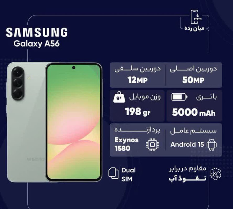 نوع سیم کارت : سایز نانو (۸.۸ × ۱۲.۳ میلیمتر)