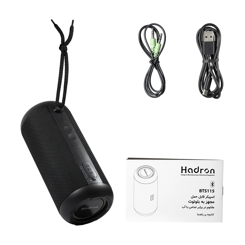 اقلام همراه : یک عدد اسپیکر یک عدد کابل AUX صدا یک عدد کابل شارژ USB یک عدد دفترچه راهنما یک عدد بند آویز
