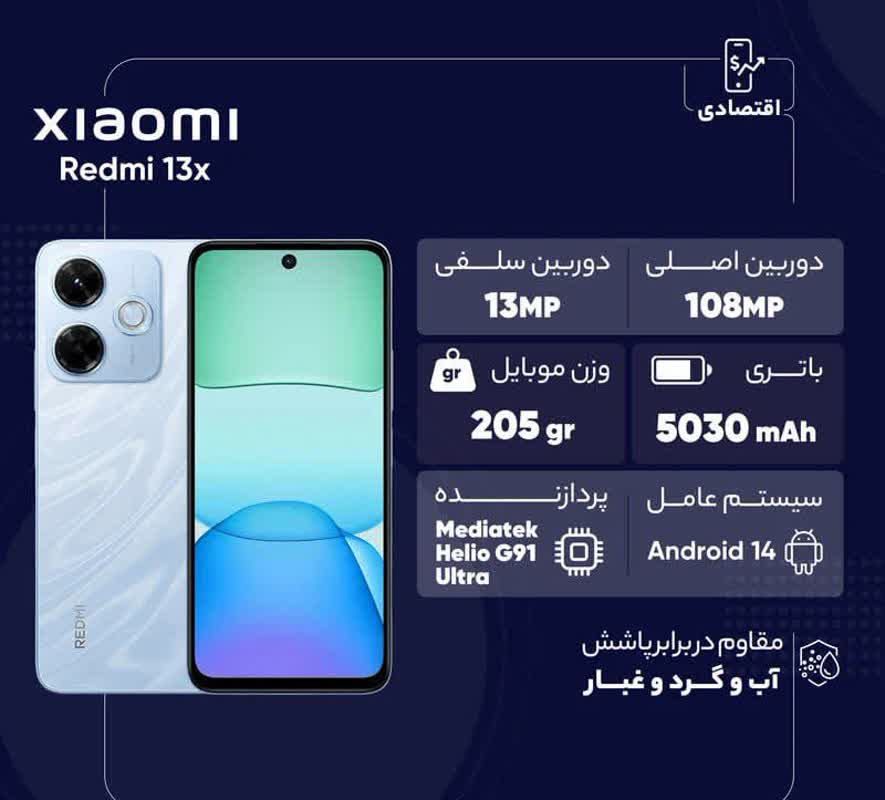 رزولوشن دوربین سلفی : ۱۳ مگاپیکسل
