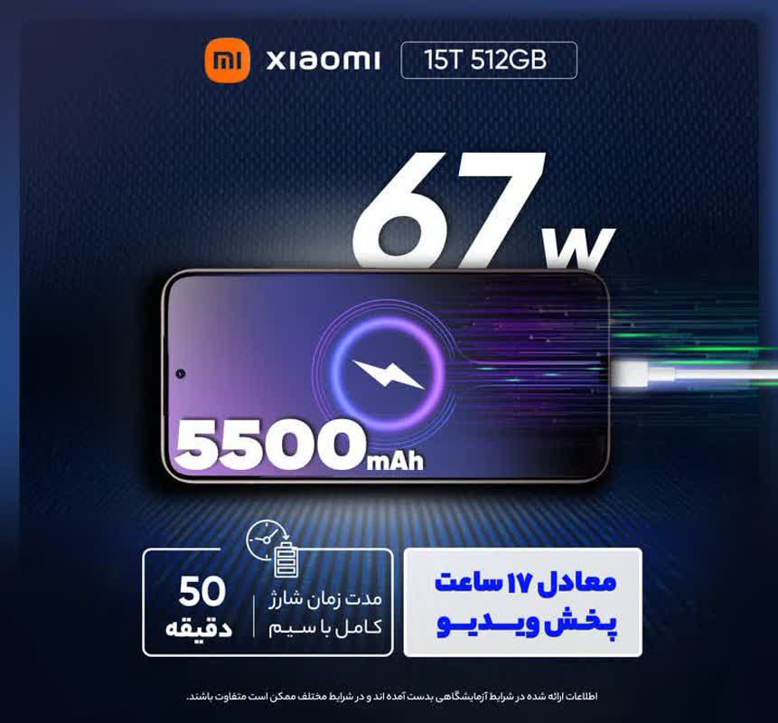 مشخصات باتری : ۱۰۰ درصد شارژ در ۵۰ دقیقه / پشتیبانی از فناوری PD۳.۰