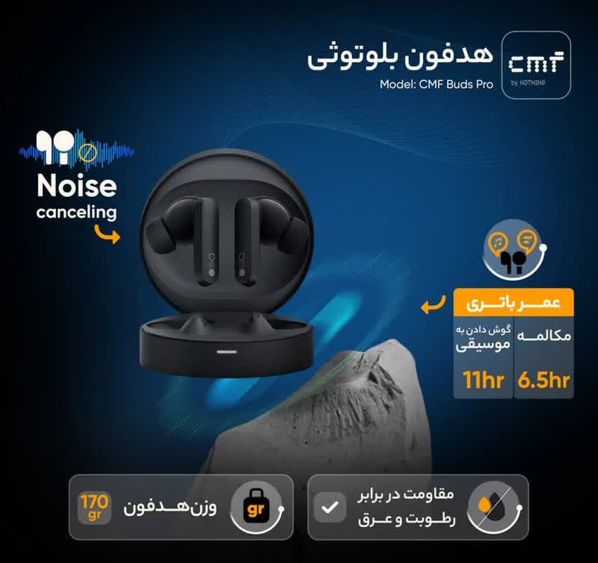 هدفون بلوتوثی ناتینگ مدل CMF Buds Pro، تلفیقی از طراحی زیبا و کارایی پیشرفته است که برای دوستداران هدفونهای نسل جدید ساخته شده است. CMF Buds Pro با بهرهگیری از فناوری نویز کنسلینگ فعال 45 دسیبل، شما را از دنیای شلوغ اطراف کاملا جدا میکند و تجربهای خاص از شنیدن موسیقی و مکالمه به همراه دارد. کیفیت صدا در این محصول، با درایورهای 10 میلیمتری و فناوری ULTRA BASS به اوج میرسد. چه در حال گوش دادن به موسیقی باشید و چه در حال مکالمه، صدا واضح، شفاف و بینقص خواهد بود. عمر باتری این هدفون بسیار بالاست. در حالت عادی، تا 11 ساعت برای موسیقی و تا 39 ساعت با محفظه شارژ، شما را همراهی میکند. اگر نویز کنسلینگ را فعال کنید، همچنان تا 6.5 ساعت موسیقی و تا 22 ساعت با محفظه شارژ، کارایی خواهد داشت. طراحی ارگونومیک و مقاوم این هدفون در برابر رطوبت و عرق، آن را به انتخاب مناسبی برای روزمره و ورزش تبدیل کرده است. همچنین با نرمافزار Nothing X App میتوانید تنظیمات مورد نیازتان را برای هدفون اجرا کنید. بلوتوث نسخه 5.3 با برد 10 متری، اتصال بی وقفه و پایدار را تضمین میکند. شارژ سریع هم از دیگر ویژگیهای محبوب این محصول است که تنها با 10 دقیقه شارژ، تا 5 ساعت استفاده را امکانپذیر میسازد.